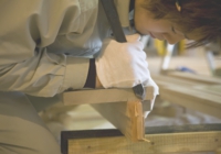 大工による材料刻み下拵え。
