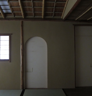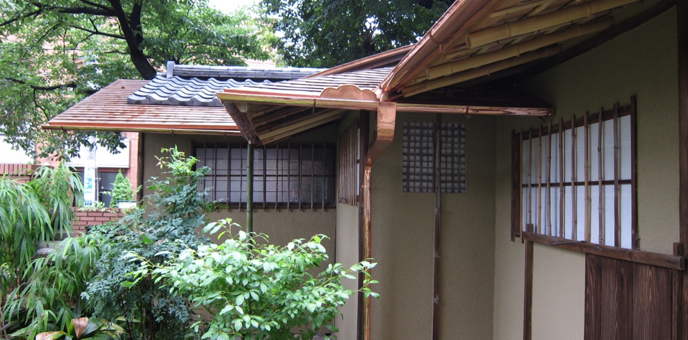 本茶室は、「茶道宗徧流」の名席として伝えられ、愛国学園の創始者、織田小三郎氏の旧宅より移築された建築である。しかし、長年の風雨によって、痛みが激しく、屋根から漏った雨は藁床の畳まで浸食していた。