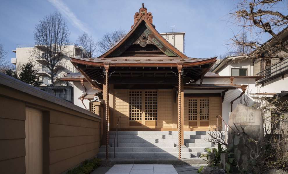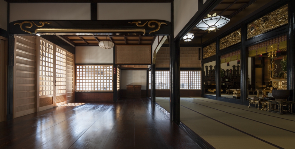 建立以来、何度か改修を重ねてはいるが、今回の改修工事は、東日本大震災に端を発したもので、建物を一度持ち上げ、基礎工事を行い、もう一度降ろすと言った大掛かりな工事となった。屋根の重量を軽減する為に、瓦屋根から銅版屋根に変更、耐震壁を設置するなどの耐震工事も行った。また、門からのアプローチ、建物内外装、仏具のあらいと言った点にも手を加え、デザイン性も一新した。